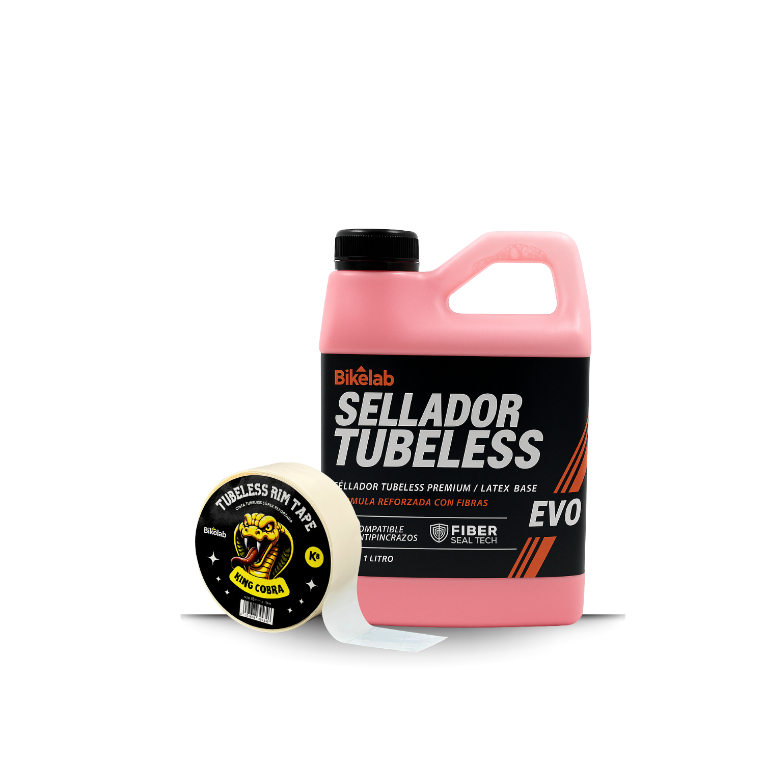 Kit Tubeless Evo Fiber Bikelab — Incluye Sellador 1 L con fibras reforzadas y Cinta Tubeless 35 mm de alta resistencia. Sella pinchaduras de hasta 8 mm y garantiza un sellado hermético del rin. Ideal para MTB, ruta, gravel y e-bikes. 🇲🇽💪
